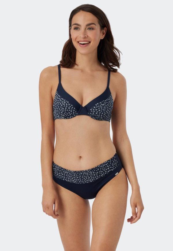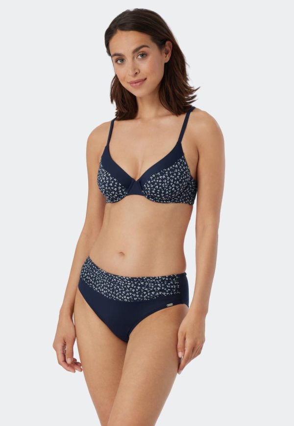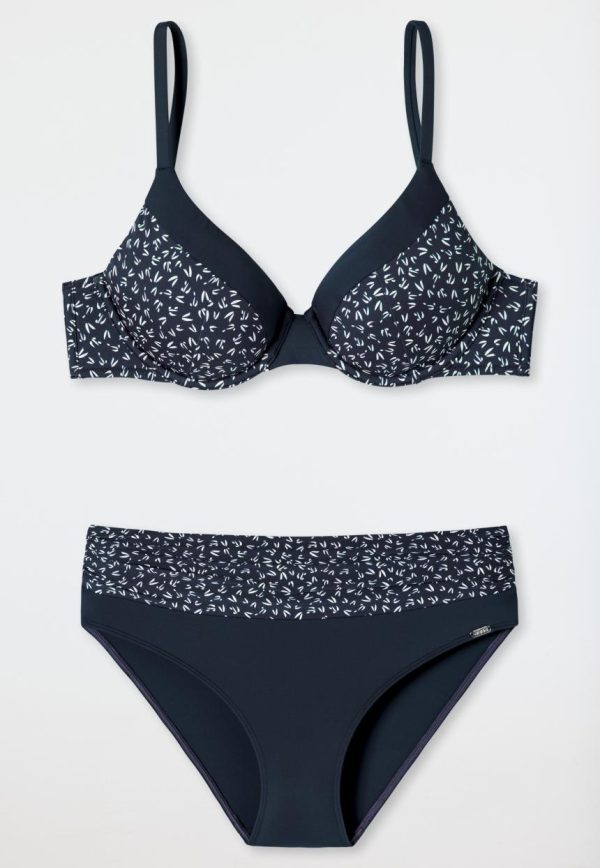 - zweiteiliges, dunkelblau-gemustertes Bügel-Bikini-Set für Damen