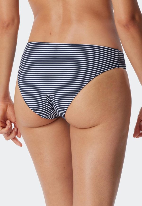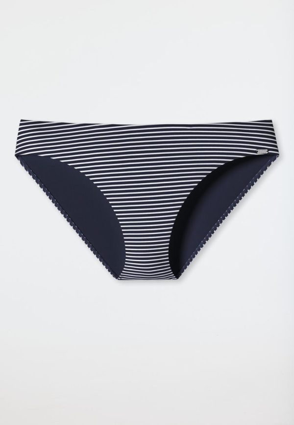 - dunkelblauer Mini-Bikinislip für Damen mit Streifendesign