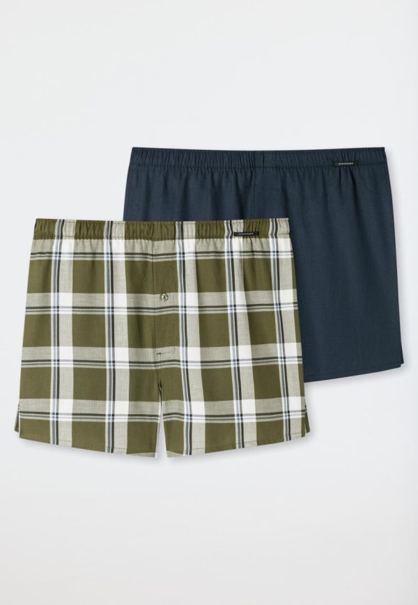 - Herren-Boxershorts im Zweierpack:1x Dunkelblau, 1x Karomuster in Blau-Grün-Weiß