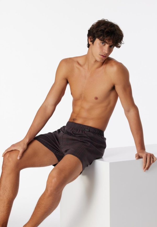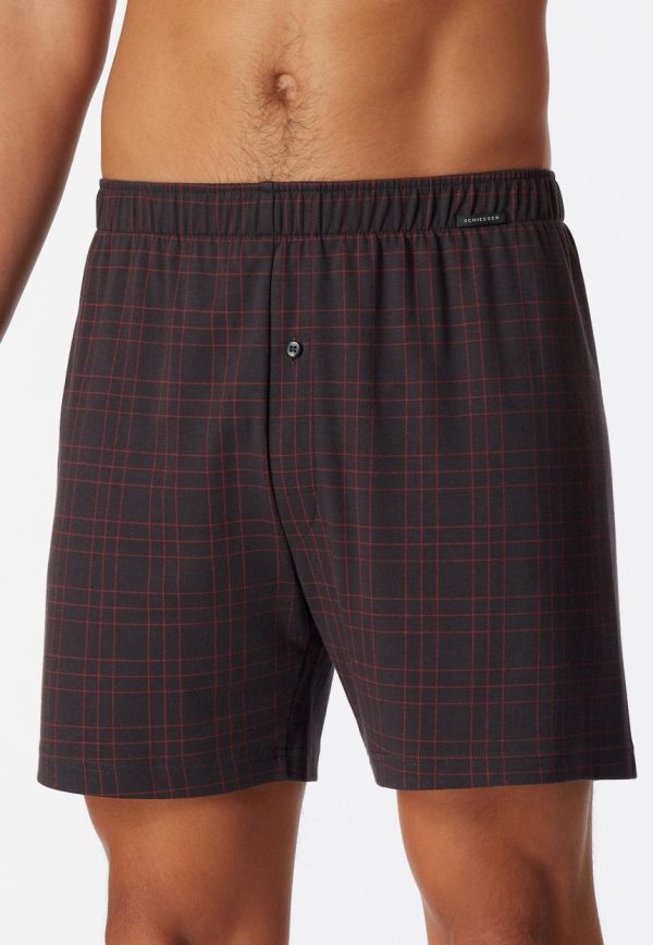 - anthrazitfarbene Herren-Boxershorts mit stilvollem Karomuster in Rot
