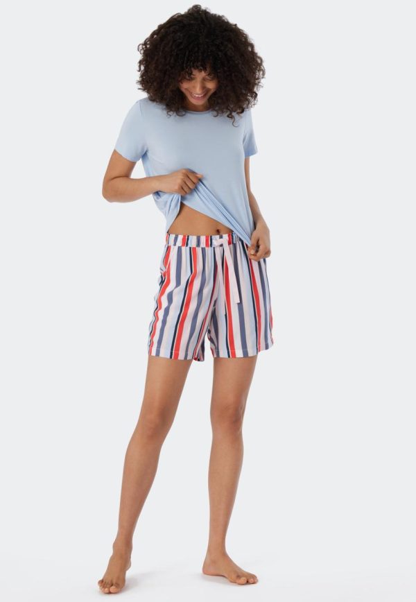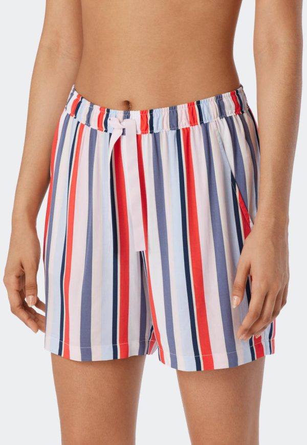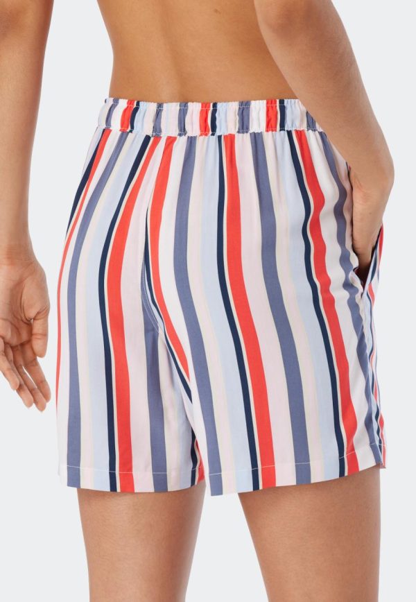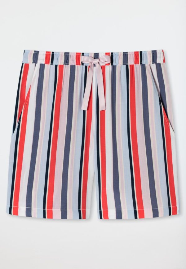 - mehrfarbige, kurze Loungehose für Damen mit Streifenprint in Blautönen, Rot, Rosé und Mint