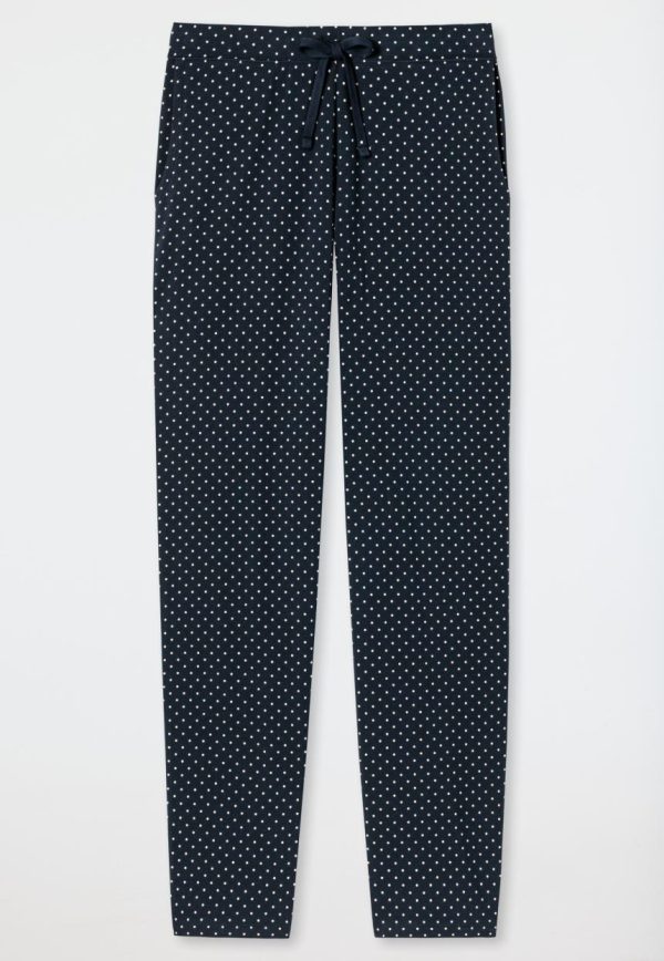 - lange Damen-Loungehose in Dunkelblau mit weißem Punkte-Alloverprint