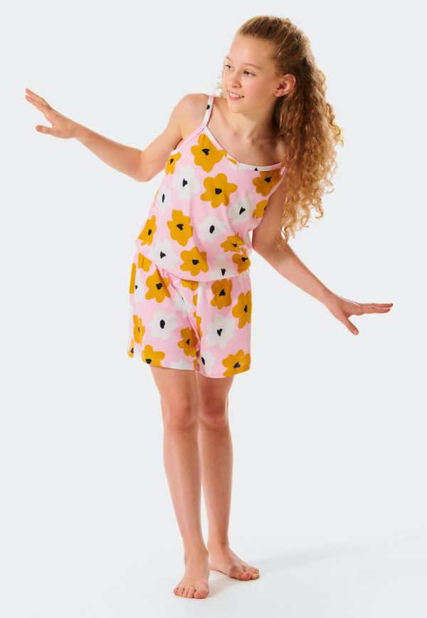 Dieser kurze Jumpsuit ist der perfekte Lieblingsschlafanzug für kleine Fashion Queens! Mit dem geblümten Design in Rosa, Weiß und Gelb sieht der Overall nicht nur trendy aus, sondern ist dank Single Jersey aus 100 % Organic Cotton auch wunderbar bequem. Dafür sorgen ebenfalls die schmalen Träger, welche sich problemlos verstellen lassen. Beste SCHIESSER-Qualität gibt´s obendrein und natürlich unsere Süße-Träume-Garantie!