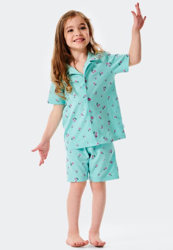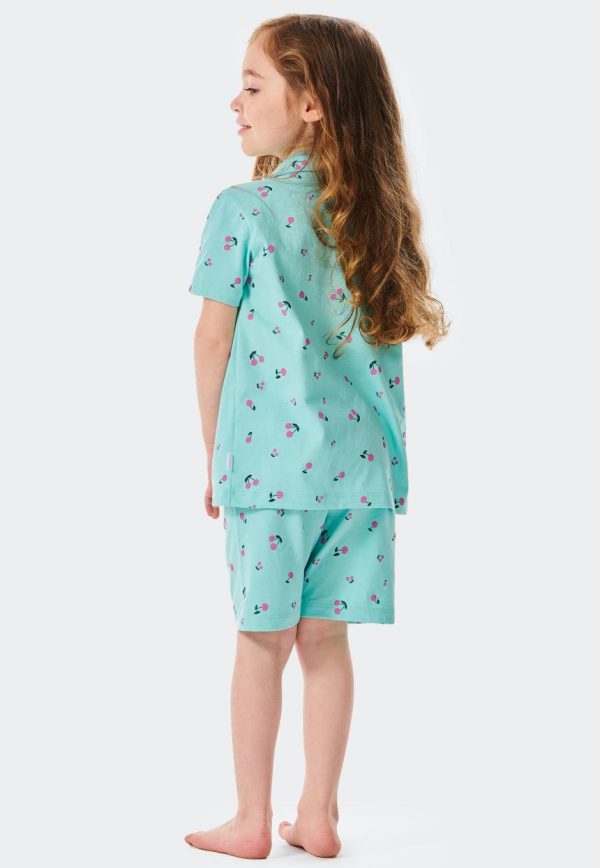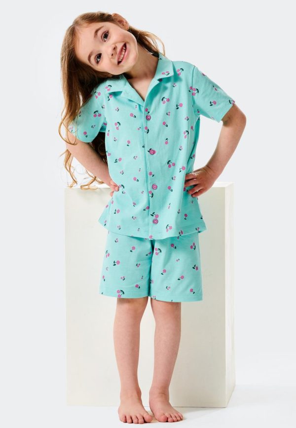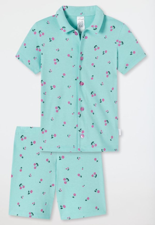 - kurzer Pyjama für Mädchen in Türkis mit Kirschen-Allover