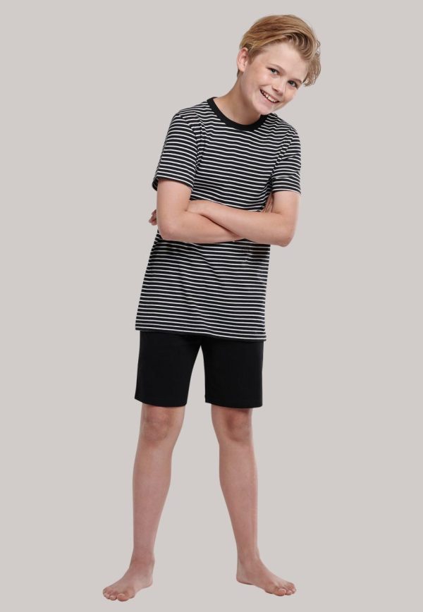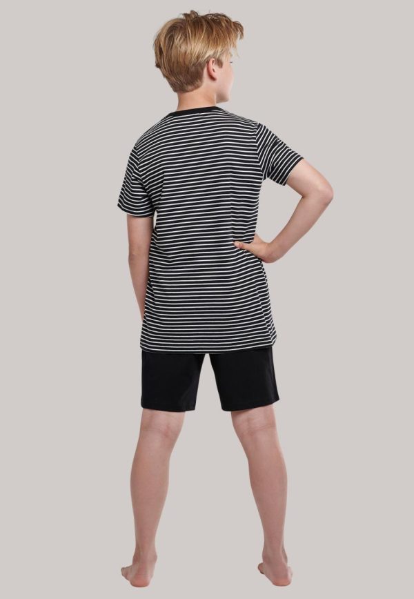 Dieser kurze Jungenschlafanzug aus 100 % Organic Cotton ist genau das Richtige für coole Boys, die es bequem mögen. In dem T-Shirt mit schwarz-weißen Ringeln lässt es sich wunderbar träumen und entspannen. Das passende Pendant findet sich in der schwarzen Shorts. Ein gemütlicher Zweiteiler in bester SCHIESSER-Qualität!