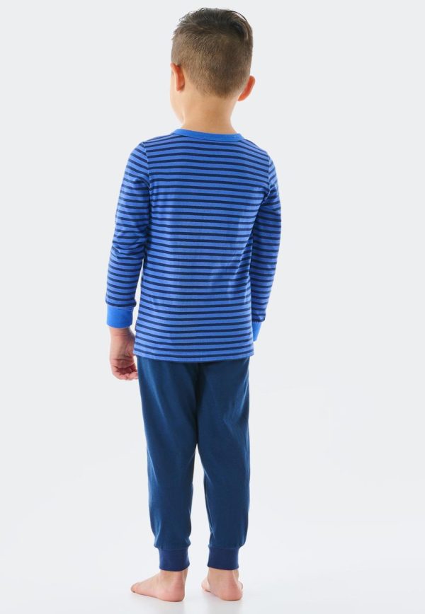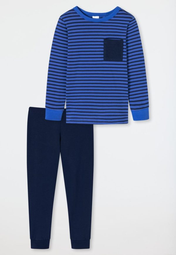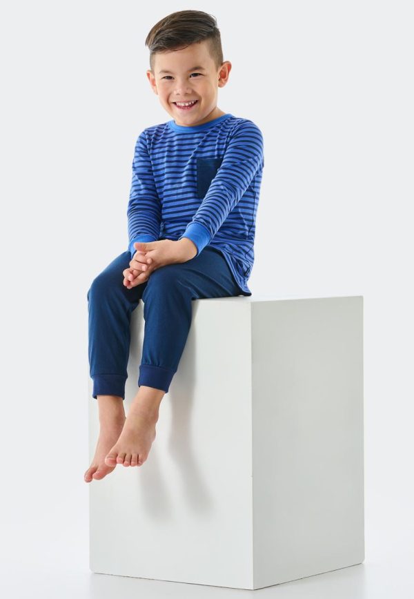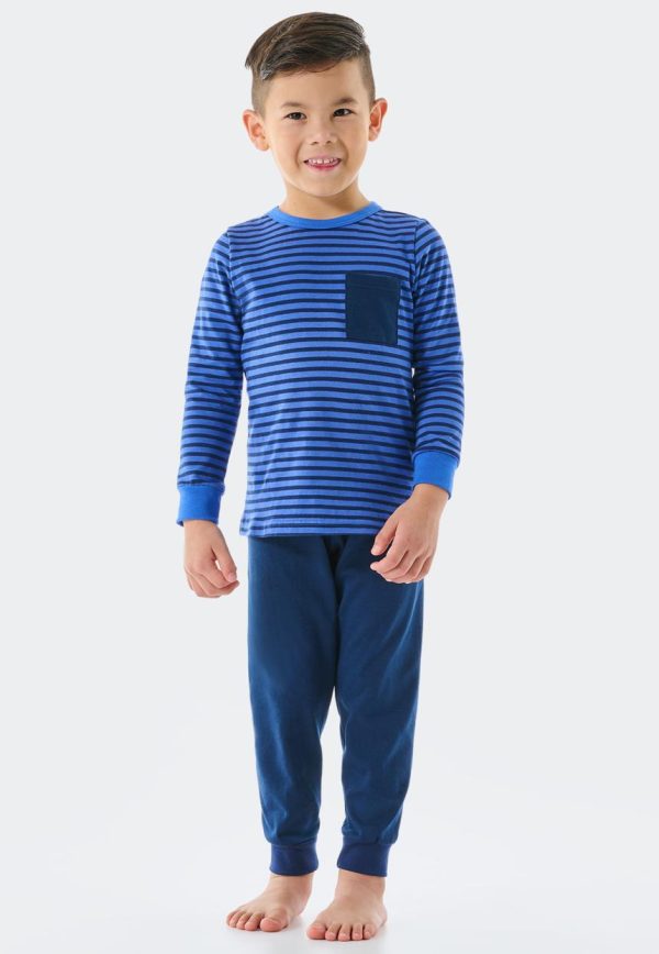 - langer Jungenschlafanzug in Blau und Dunkelblau mit Rundhalsausschnitt und Brusttasche in Dunkelblau
