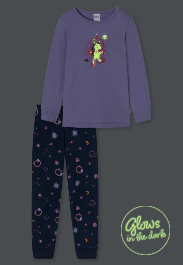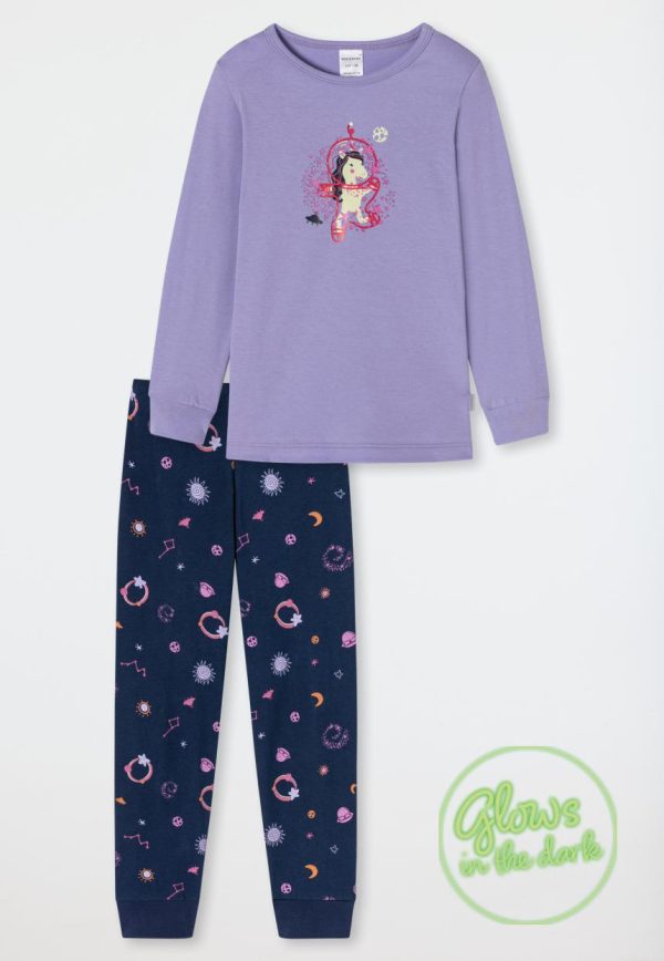SCHIESSER Nachtwäsche | Schlafanzug Lang Organic Cotton Bündchen Galaxy-Einhorn Glow-Effekt Flieder Girls World Flieder Kinder