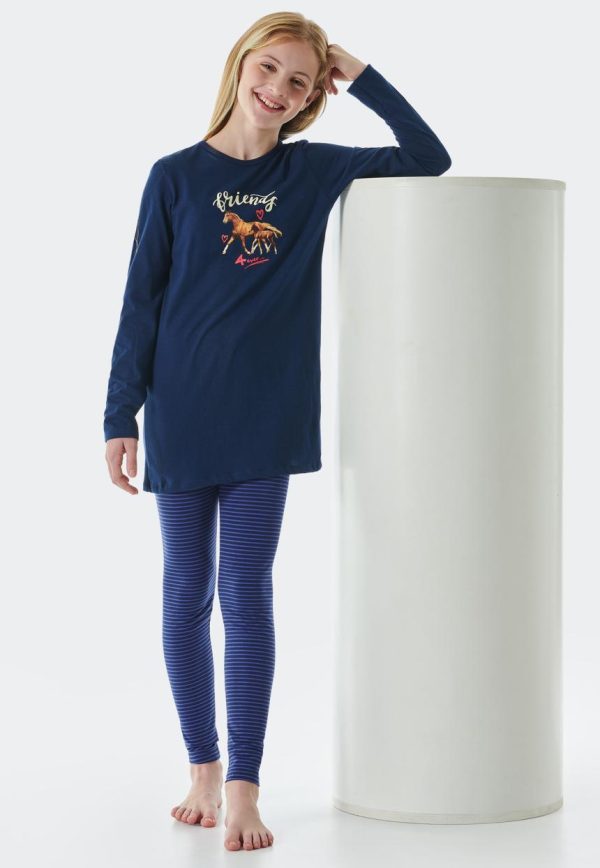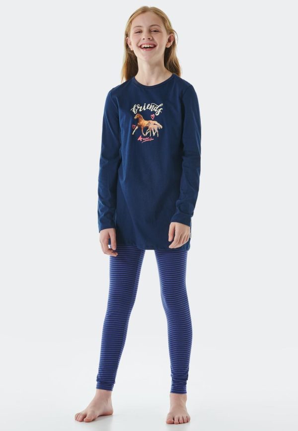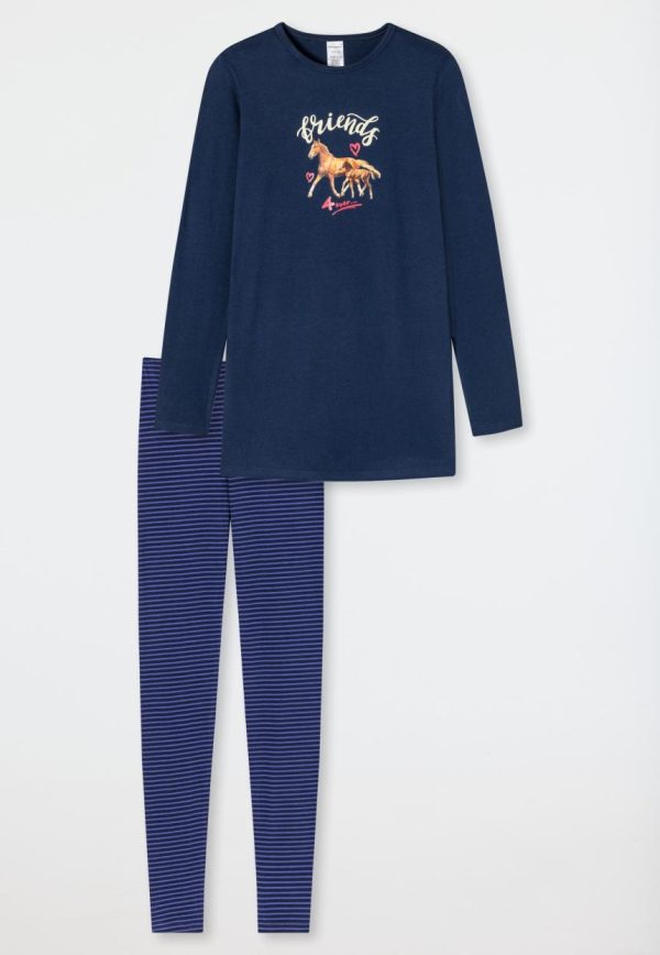 SCHIESSER Nachtwäsche | Schlafanzug Lang Organic Cotton Pferde Freunde Dunkelblau Horse World Dunkelblau Kinder