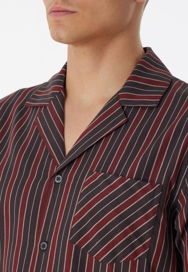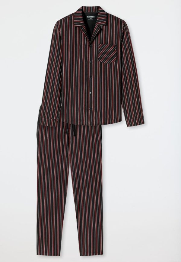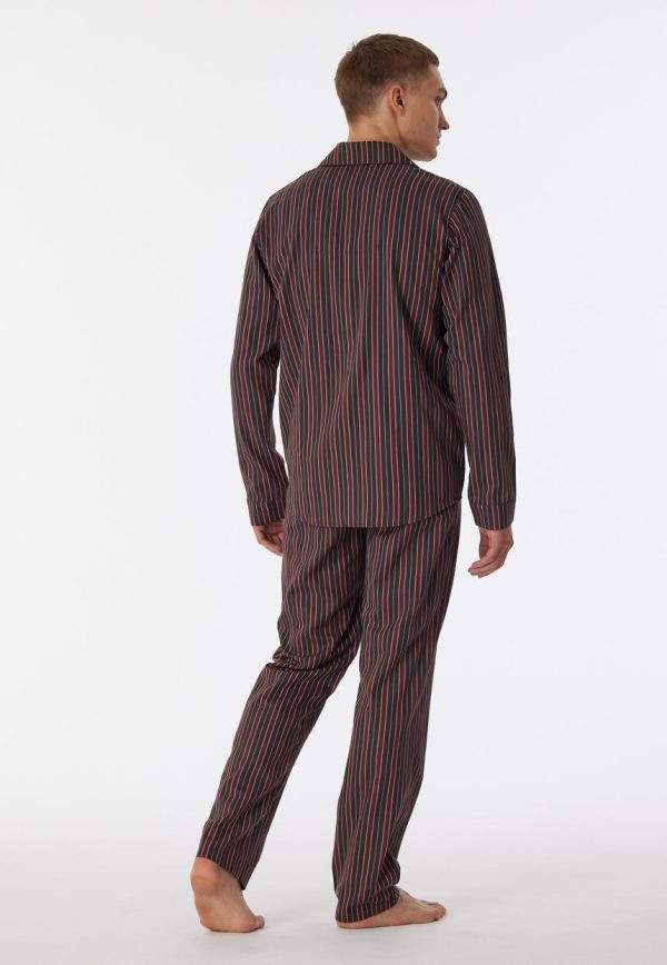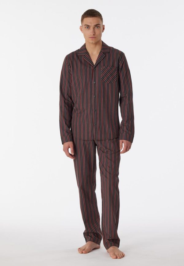 - langer, gestreifter Herren-Pyjama in Anthrazit und Terracotta