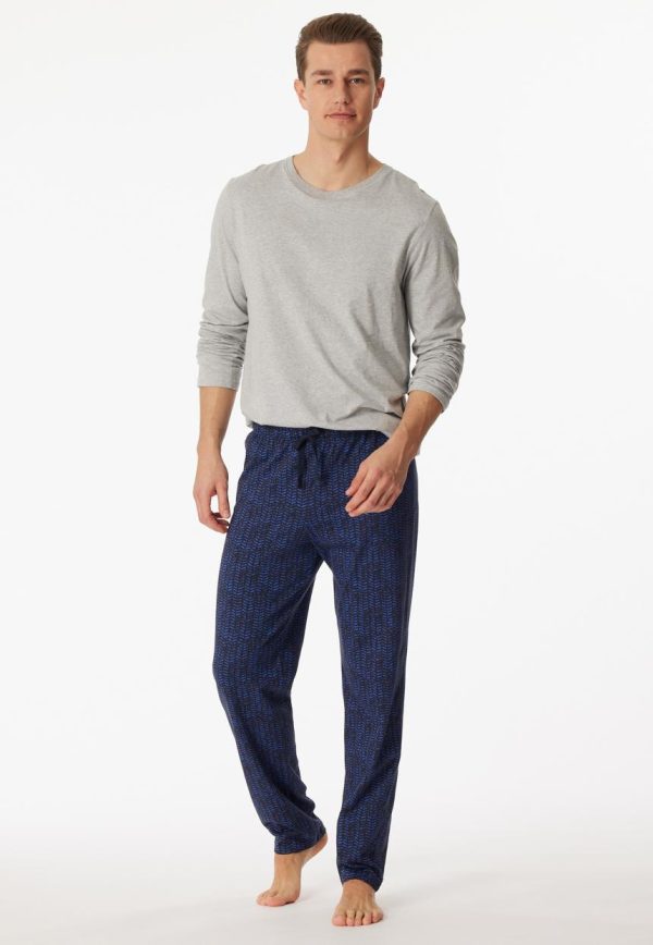 - langer, grau-melierter Herren-Schlafanzug mit gemusterter Hose in Nachtblau und Royalblau