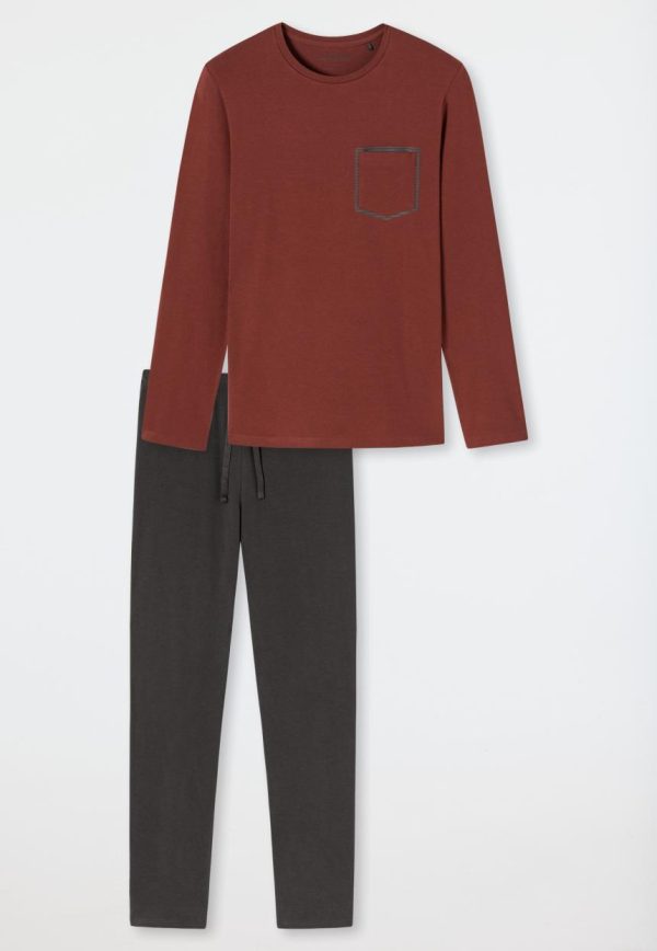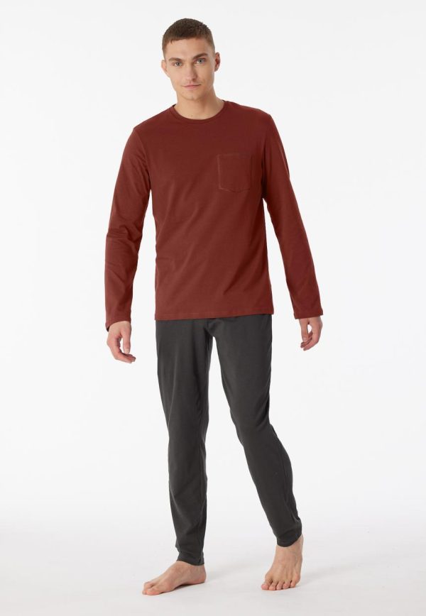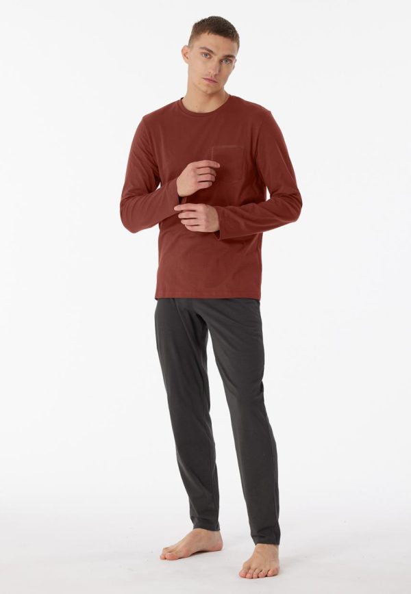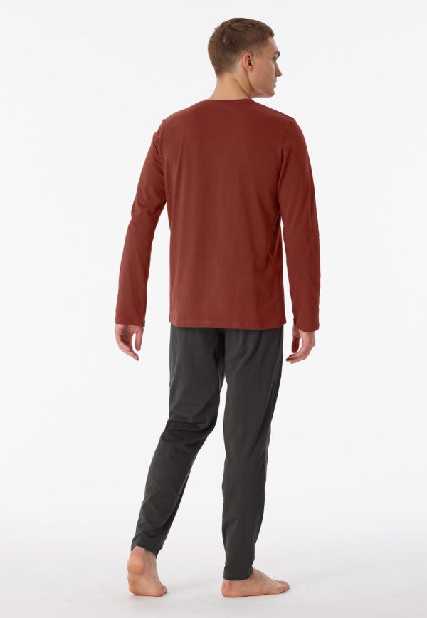 - langer Herren-Schlafanzug mit terracottafarbenem Langarmshirt und anthrazitfarbener Hose