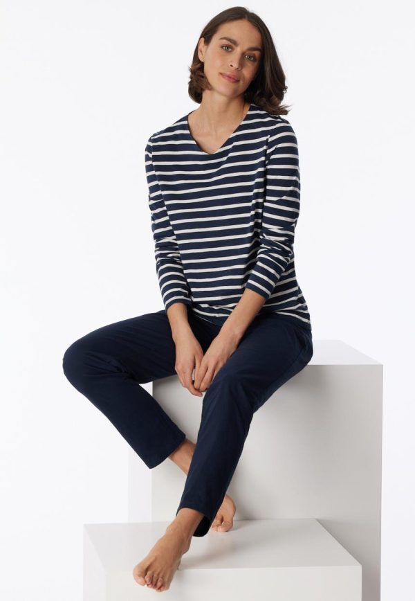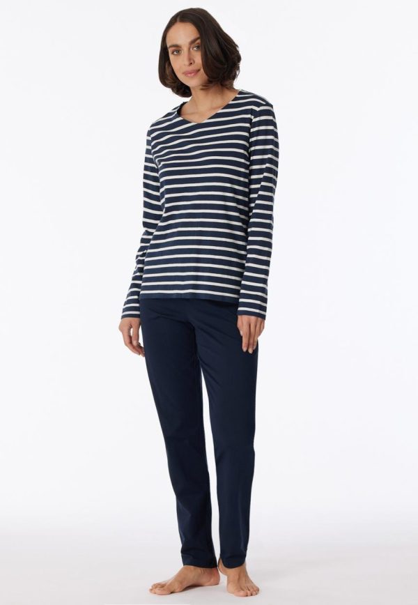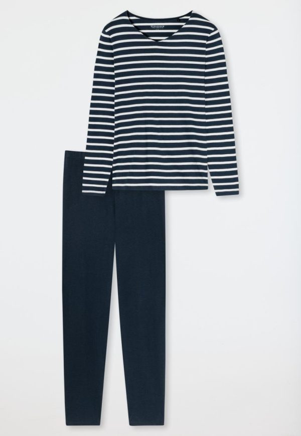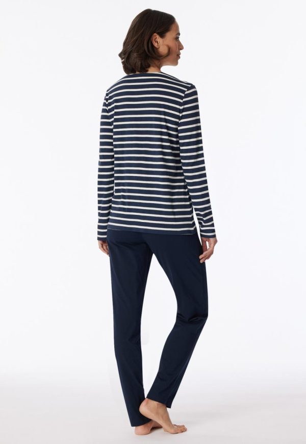 - langer, nachtblauer Damen-Schlafanzug