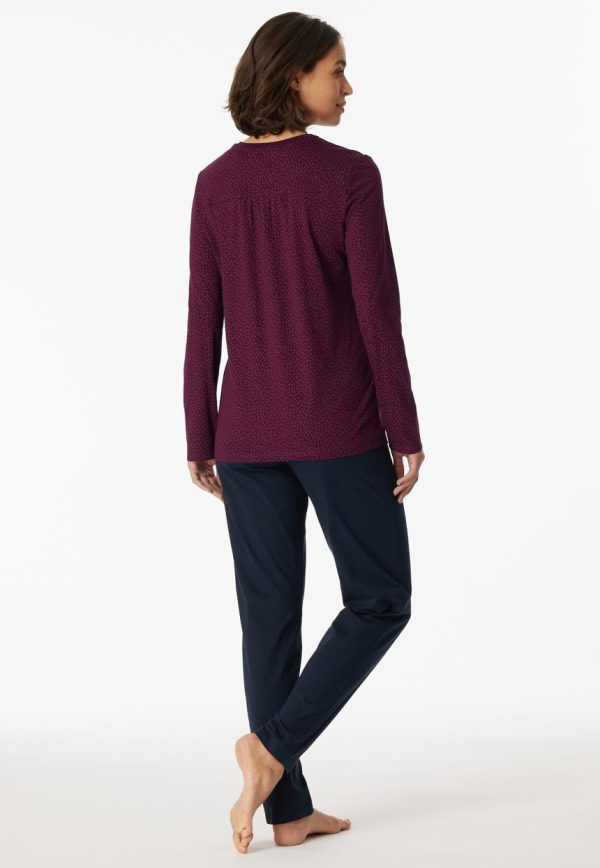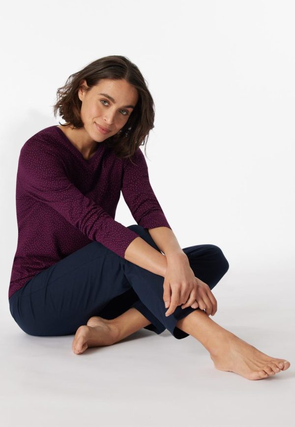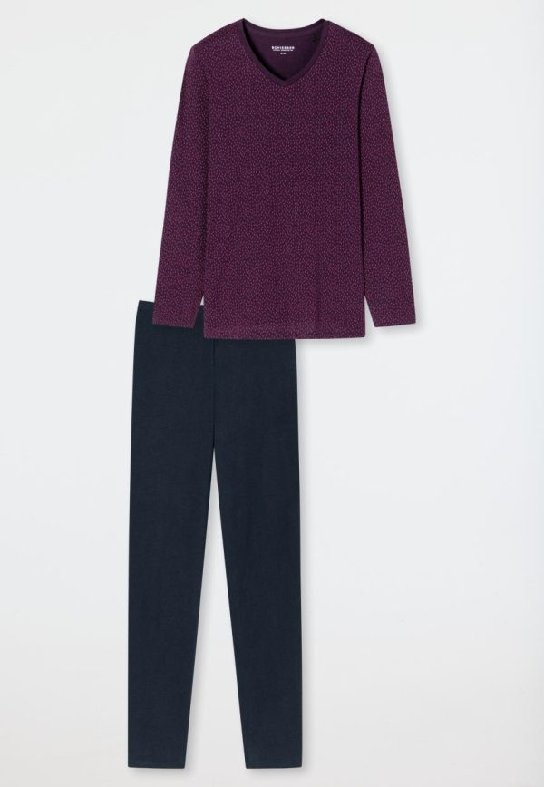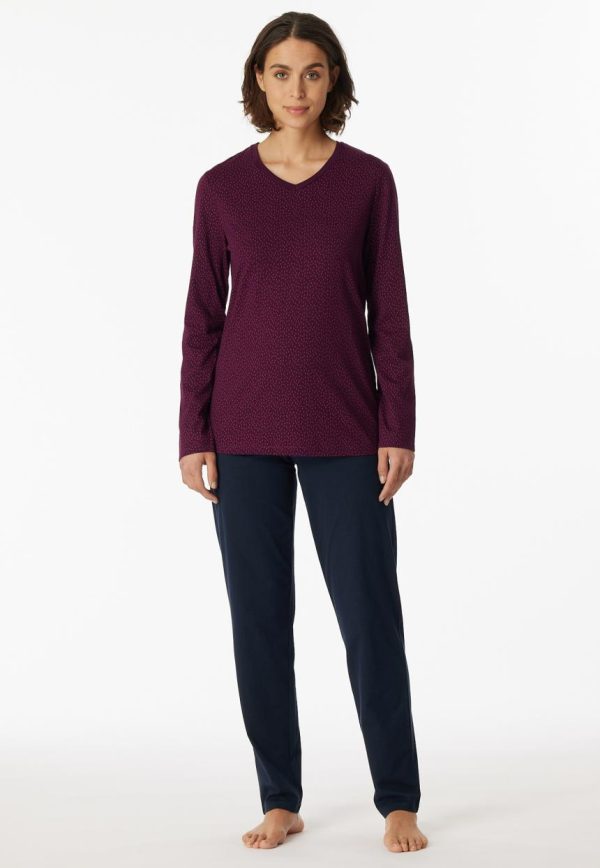 SCHIESSER Schlafanzüge | Schlafanzug Lang V-Ausschnitt Punkte Pflaume Comfort Essentials Pflaume Damen