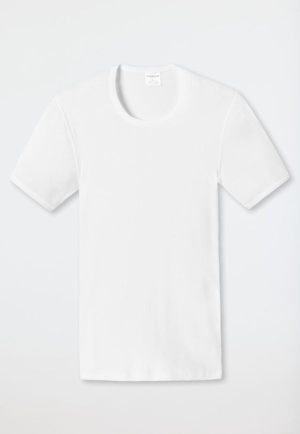Basics in bester Qualität: Dieses weiße Herren-T-Shirt überzeugt durch einen puren Look und einen hohen Tragekomfort. 100% supergekämmte Baumwolle in Doppelripp-Qualität schenkt dem Rundhals-Shirt einen maskulinen Charakter, der kernig wirkt und gleichzeitig ein weiches, angenehmes Hautgefühl garantiert. Ein besonders bequemes Shirt für Herren, die strapazierfähige, langlebige Produkte in gewohnt bester SCHIESSER-Qualität schätzen!