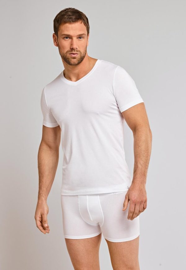 - weißes Herren-T-Shirt mit V-Ausschnitt