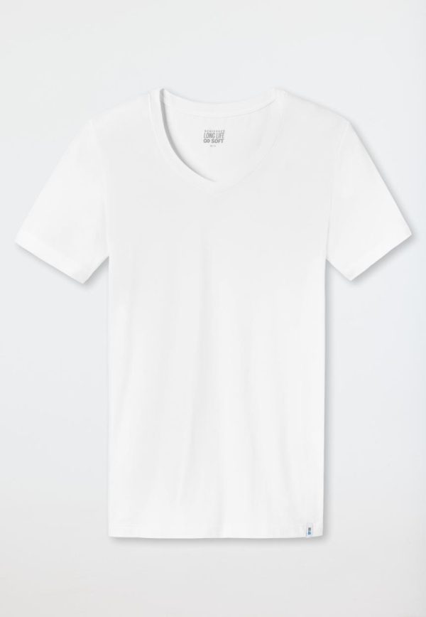 Dieses T-Shirt aus der SCHIESSER-Serie „Long Life Soft“ ist genau das Richtige für Herren, die innovatives, pillingarmes Material in perfekter Passform schätzen. Hochwertiger, elastischer Single Jersey fühlt sich dabei angenehm glatt und weich an auf der Haut und sorgt mit dem ausgeglichenen Micromodal-Anteil für ein optimales Feuchtigkeitsmanagement. Ein besonders langlebiges Shirt mit V-Neck, das sich sanft jeder Bewegung des Körpers anpasst und dadurch höchsten Tragekomfort gewährt.