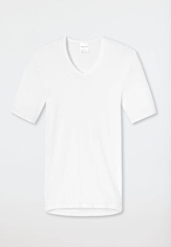 Wäsche-Originale in Bestform: Dieses weiße Herren-Kurzarmshirt aus der SCHIESSER-Serie „Original Classics“ kombiniert traditionellen Feinripp mit hohem Komfort. 100% supergekämmte Baumwolle fühlt sich dabei angenehm weich an auf der Haut und wird mit dem V-Ausschnitt, der längeren Rückenpartie und ganz ohne störende Seitennähte besonders bequem. Ein wahrer SCHIESSER-Klassiker in bester Qualität!