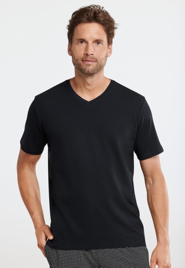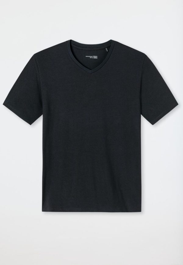 Dieses schwarze Herren-Kurzarmshirt ist weit mehr als ein simples Basic! Fließend weicher Single Jersey aus Baumwolle und Modal verspricht dabei höchsten Tragekomfort, fühlt sich angenehm glatt an und bleibt dank 5 % Elastan jederzeit in Topform. Der V-Ausschnitt unterstreicht den männlichen Look. Ein authentisches, bequemes T-Shirt in bester SCHIESSER-Qualität!