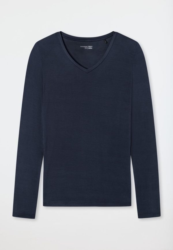 Ein anschmiegsames Must-Have ist dieses Basic-Langarmshirt für Damen! Mit seinem angenehmen Schnitt umspielt es den Körper wunderbar leicht. Der V-Ausschnitt rundet den lässigen Look stimmig ab. Das Wohlfühl-Geheimnis ist elastischer Single Jersey aus natürlichem Modal. Das supersofte Material schmeichelt der Haut, ist atmungsaktiv und pflegeleicht. Einfach mit der passenden Hose aus der Mix+Relax Serie kombinieren – fertig ist der entspannte Style in bester SCHIESSER-Qualität!