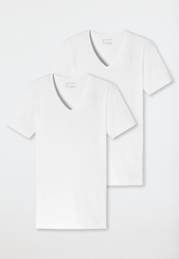 Natürlichkeit im Doppelpack: Diese Kurzarm-Shirts sind genau das Richtige für Herren, die unkomplizierte, zuverlässige Unterwäsche schätzen. Mit dem Material-Mix aus 95% nachhaltigem Organic Cotton und 5% Elastan sorgt das puristische Wäschepack für ein angenehmes Tragegefühl und jede Menge Komfort im Alltag. Ohne Probleme lässt sich das Duo mit seinem, tiefen V-Ausschnitt auch unter dem Business-Hemd tragen und wird so zum neuen Lieblingsteil in bester SCHIESSER-Qualität!