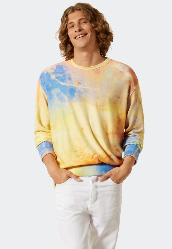 Mit diesem Sweatshirt für Herren feiert SCHIESSER zusammen mit Noah Becker die pure Lebensfreude: Beim Design hat sich der Künstler und Musiker von guter Laune und Leichtigkeit inspirieren lassen. Frische, sommerliche Farben kombiniert in einem angesagten Batik-Print machen Lust aufs Leben. Dank der extra soften, innen angerauten Sweatware sowie den komfortablen Bündchen ist der lässige Pullover „Noah“ besonders angenehm zu tragen. Passt perfekt zu Jeans oder Chino!