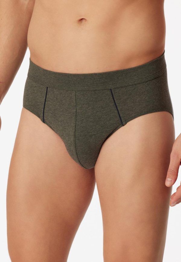 - grün melierter Minislip für Herren mit eleganten Paspeln in Blau