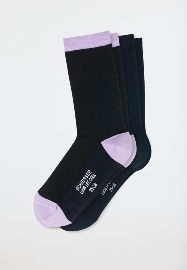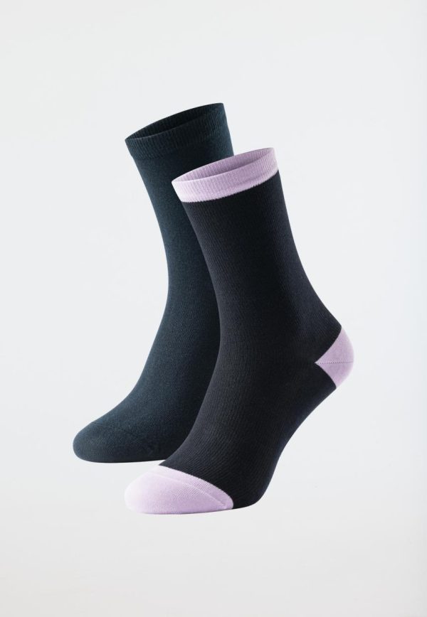 - Socken für Damen im 2er-Pack: 1x Dunkelblau, 1x Dunkelblau-Lavendel mit schwarzen Streifen