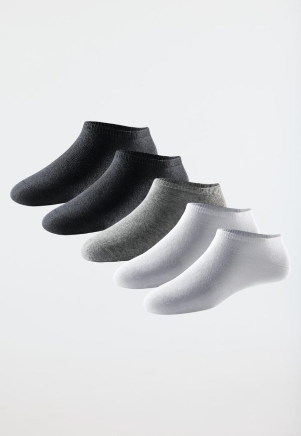 - Sneakersocken für Herren im praktischen 5er-Pack: 2x weiß, 2x schwarz, 1x silbergrau-meliert