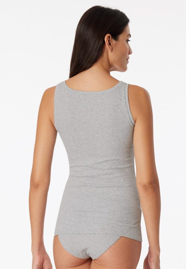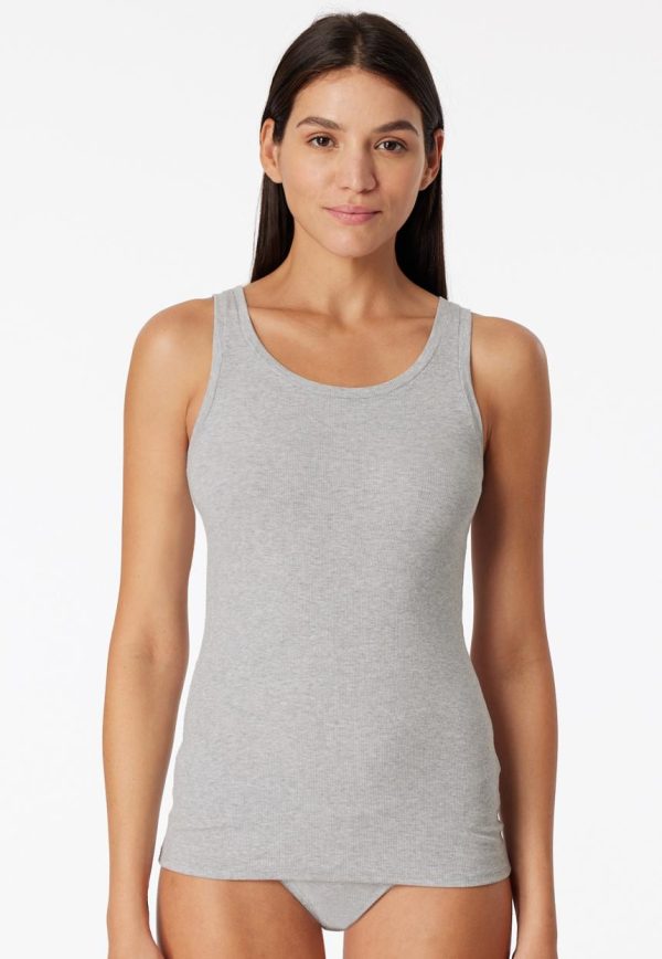 SCHIESSER Tops | Tanktop Doppelripp Organic Cotton Schwarz Pure Rib Grau-mel. Damen