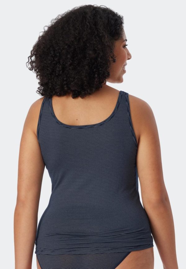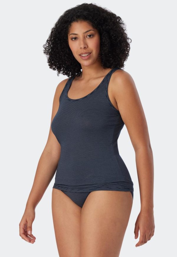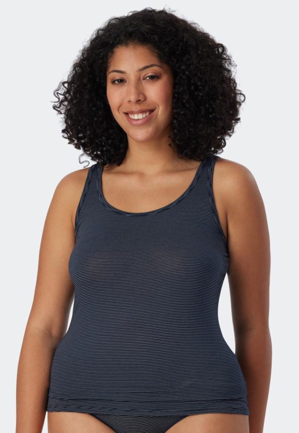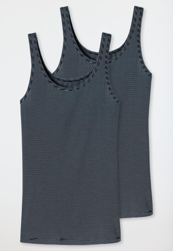 Basic-Wäsche im 2er-Pack: Bei diesen Trägertops für Damen trifft eine perfekte Passform auf wunderbar leichtes Material. Formstabiler, elastischer Single Jersey mit hohem Modal-Anteil ist dabei das Komfortgeheimnis der beiden Tops, die sich nicht nur herrlich soft anfühlen, sondern zudem noch temperaturausgleichend sind. Mit ihren nachtblau-weißen, schmal gestrickten Ringeln werden die Unterhemden zum charmanten Basic-Duo – natürlich in bester SCHIESSER-Qualität!