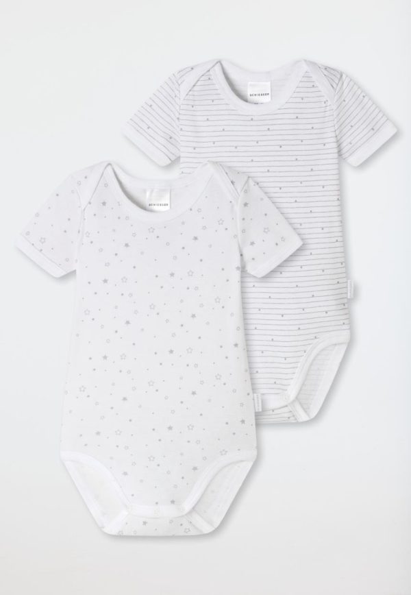 - weiße, bedruckte Kurzarm-Babybodys Unisex im praktischen Doppelpack