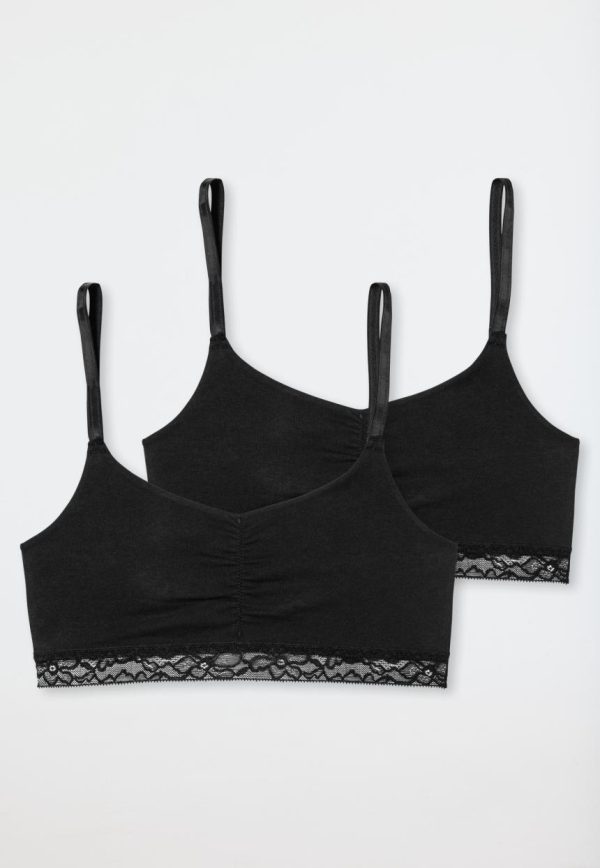 Bei diesen unifarbenen Bustiers dürfen modische Mädchen ein trendy Wäsche-Duo erwarten. Elastischer Single Jersey mit Organic Cotton übernimmt den bequemen Part und bleibt den ganzen Tag in Topform. Die schmalen Träger sind easy verstellbar. Hübsche Spitze am Unterbrustband und leichte Raffungen im Brustbereich setzen die i-Tüpfelchen und machen die Bustiers zum Wäsche-Dreamteam in bester SCHIESSER-Qualität!