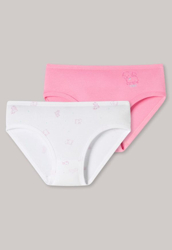 Ein Doppelpack zum Verlieben! Diese beiden Hüftslips lassen alle Mädchenherzen höher schlagen. Ob in Pink mit kleinem süßen Hündchen oder im tierischem Allover-Look – dieses Tagwäsche-Duo sorgt für ein rundum herrliches Tragegefühl. Das bequeme Feinripp-Material aus 100% softem Organic Cotton umschmeichelt jederzeit die zarte Kinderhaut und garantiert bei jedem Spiel-Spaß den perfekten Sitz – natürlich in bester SCHIESSER-Qualität!