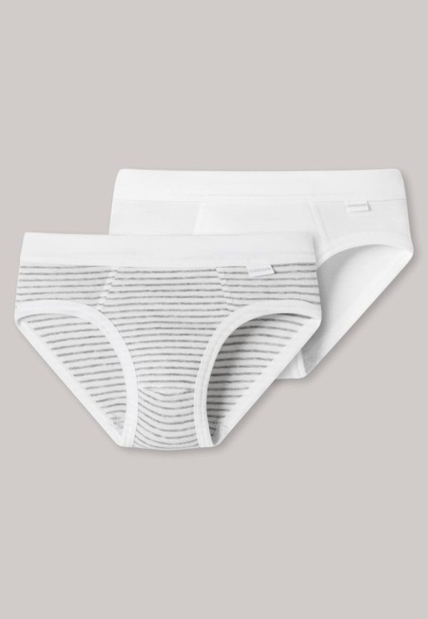 Auch kleine Rabauken mögen es bequem! Diese beiden Jungen-Sportslips im Doppelpack sind genau das Richtige für alle Abenteuer des Alltags. Ob in klassischem Weiß oder fröhlich geringelt in hellem Grau – dieses Duo verbreitet richtig gute Laune. Dank des komfortablen Softbundes sitzen die Unterhosen perfekt am Körper und werden aus 100% hautfreundlichem Organic Cotton zum cleveren Sportspartner in bester SCHIESSER-Qualität!
